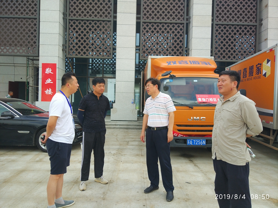 8月4日上午,我校新校区搬迁工作今天正式启动,基建处、保卫处、后勤处、后勤服务总公司、文学院为第一批搬迁单位。党委书记王仁雷、党委副书记潘文、副校长刘贵友赴石湫校区视察搬迁工作,基建处、保卫处、后勤处等部门主要负责同志和部分施工单位负责人陪同视察。