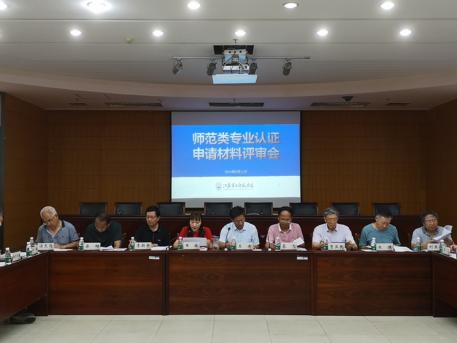 8月26日下午,我校在草场门校区教科研楼511会议室召开师范类专业认证申请材料评审会。校长王建、徐州幼儿师范高等专科学校校长蔡飞、校教学督导、相关二级学院负责人共同组成评审专家组,对我校师范类专业认证申请材料开展评审工作。质评处处长陈蓓、副处长吴晋,各专业迎评工作团队及相关工作人员参加会议。会议由王建主持。