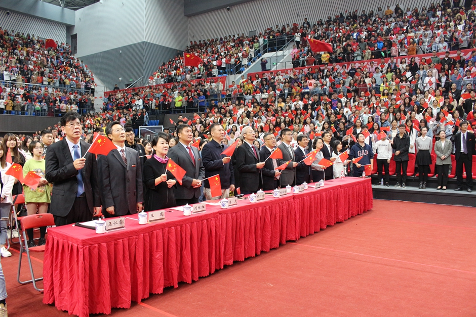 金秋十月,天高气爽。10月10日上午,我校2019级新生开学典礼在石湫校区体育馆举行。来自全国各地的2700余名新生汇聚校园,开启新阶段学习之旅。党委书记王仁雷,校长王建,校领导刘继红、潘文、祝兴成、姚振标、陈金如、刘贵友出席会议,二级学院党政负责人、有关职能部门负责人,教师代表、家长代表等共聚一堂,与新生们一起见证这个温馨而又激动人心的时刻。典礼由党委副书记、副校长刘继红主持。