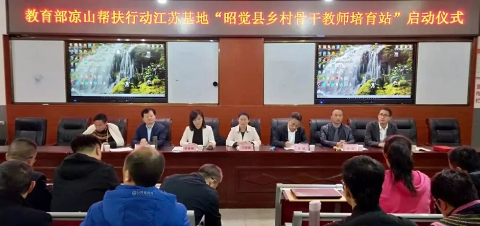 10月14日,“教育部凉山帮扶行动江苏基地昭觉县乡村骨干教师培育站”启动活动在四川省凉山彝族自治州昭觉县举行。教育部教师工作司教师管理与师德建设处调研员刘璇璇,江苏省教育厅教师工作处处长马斌,江苏省师干训中心常务副主任季春梅,凉山州昭觉县人民政府副县长杨强、教育体育和科学技术局局长勒勒曲尔,教育部中小学名校长领航工程江苏基地名校长、教育部凉山帮扶行动项目学校支教老师和昭觉县300余位骨干教师、学校管理者参加此次活动。