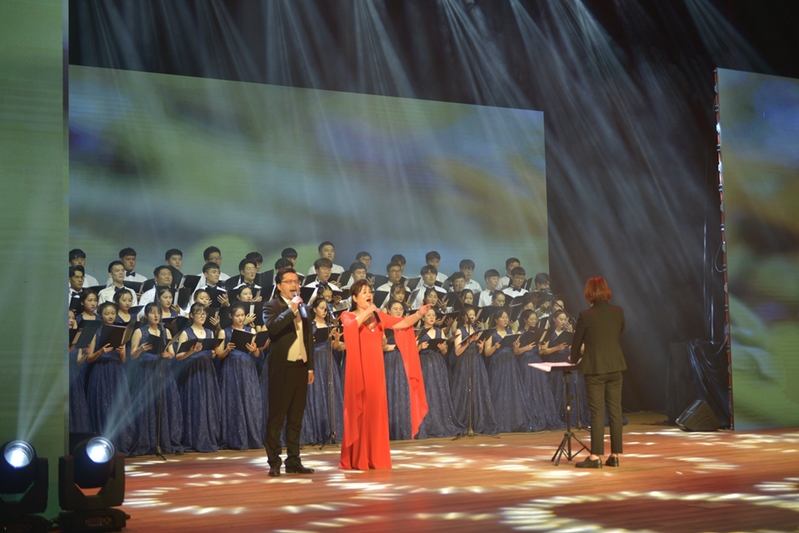 音乐会在曲目选择和安排上突出新中国成立70年来各个阶段的经典音乐作品,以声乐表演和器乐演奏为主,在合唱团整场铺垫的基础上,结合领唱、对唱、重唱、小合唱、独奏、重奏等表演形式。合唱《人民解放军占领南京》再现了人民解放军飞渡长江天堑,解放南京,改造黑暗旧社会的光辉史实;《祖国颂》《我和我的祖国》《共和国之恋》以激情饱满、深情真挚的表演向祖国母亲表达了最深沉的热爱;手风琴独奏《华尔兹》《贝加尔湖》以优美的旋律为观众内心带来宁静平和;笛子独奏《春到湘江》以明快活泼的曲调展示了盎然春意。整场演出展现了我校师生扎实的演唱、演奏功底。