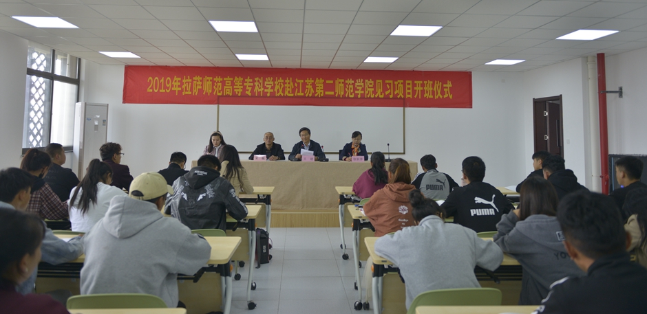 11月4日上午, 2019年拉萨师范高等专科学校师生来宁见习开班仪式在石湫校区举行,校长王建出席仪式,拉萨师专教务处处长宋巍等,我校教务处处长徐新萍、副处长万东升等以及来自拉萨师专学前教育等6个专业的38名见习学生参加开班仪式。徐新萍主持仪式。