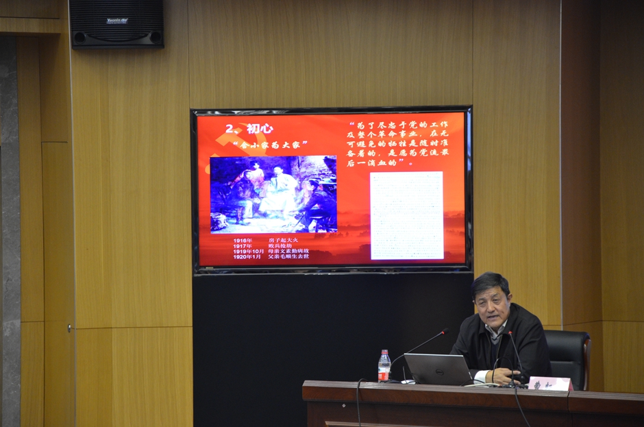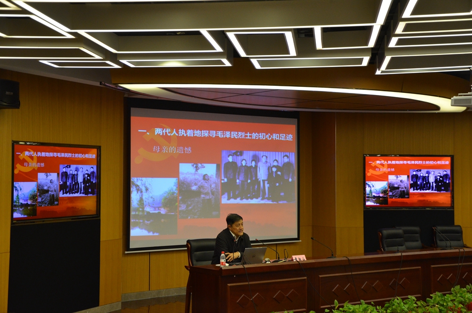 11月6日下午,我校邀请革命烈士毛泽民的外孙曹耘山来校,在草场门校区给广大师生作题为《从共产国际档案探寻毛泽民烈士的初心和足迹》的讲座。党委副书记潘文出席,团委书记刘姝主持活动。