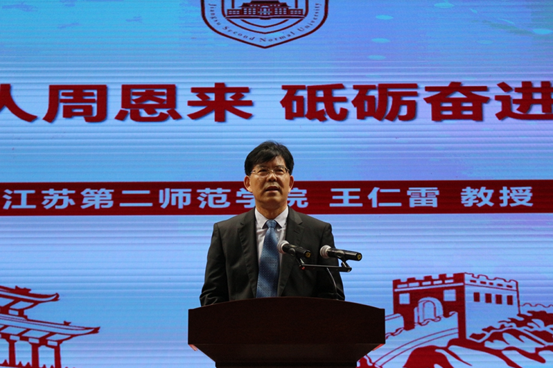 校党委书记王仁雷为全体新生上思政课 学校将恩来精神融入师范生培养,为将学生培养成为未来的“四有好老师”奠定坚实基础。新学期开学之初,校党委书记王仁雷就以《学习伟人周恩来 砥砺奋进新时代》为题为全体新生上了一堂生动的思政课,勉励全体新生要用心用情学习传承恩来精神,做“四有好老师”。