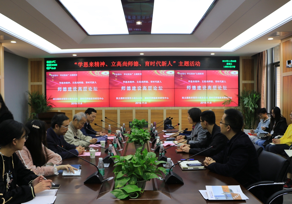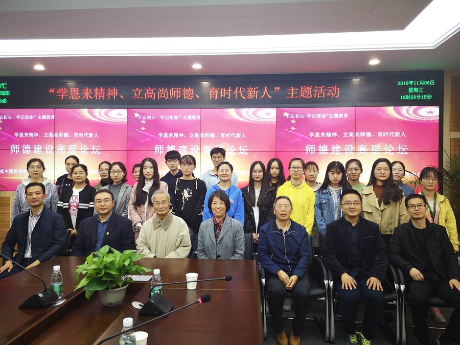 根据校“不忘初心、牢记使命”主题教育安排,作为校新时代师德教育中心“立德树人 培根铸魂”学术活动的续篇,11月6日下午,校“不忘初心、牢记使命”主题教育办公室和新时代师德研究中心在石湫校区共同举办“学恩来精神、立高尚师德、育时代新人”师德建设高层论坛。全国著名德育研究专家、南京师范大学班华教授,南京医科大学人文学院主任李勇副教授、南京第十二中学党委书记王吉群先后在论坛主讲。论坛由中心主任张勤教授主持,校主题办、教务处、教师教学发展中心、马院及卓培班部分师生参加活动。