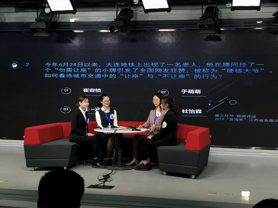 11月16日下午,2019“苏海杯”江苏省首届大学生记者挑战赛决赛在连云港报业传媒集团举行,我校学通社记者魏艺真、于萌萌代表学校参赛,并荣获一等奖、优胜奖。