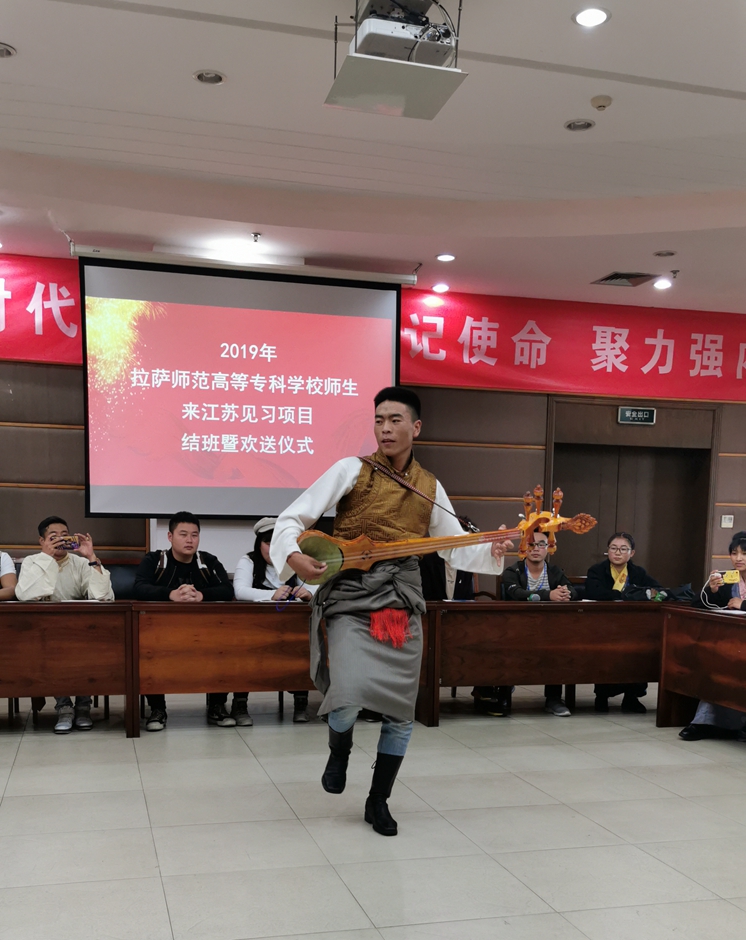 拉萨师专同学为我校参会人员献上哈达,并表演了富有西藏特色的节目。2019年拉萨师专来宁见习活动进一步加深了我校和拉萨师专的深厚友情。