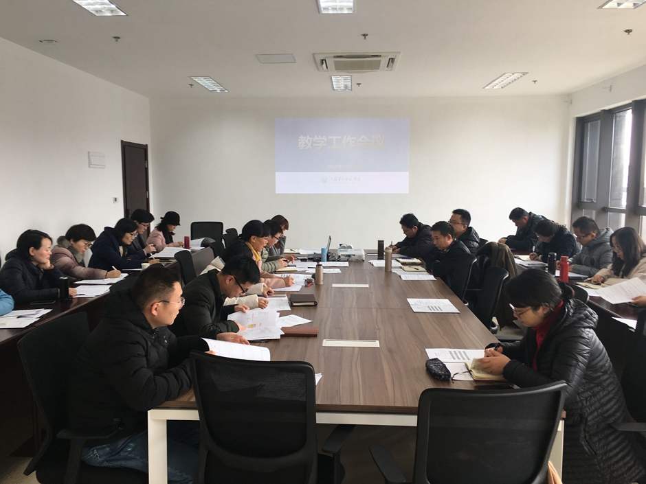 教务处副处长徐洁、万东升分别从教学运行(课务、考务、教材)、教学实践(实习、师范生教学基本功、毕业论文)、教学研究(一流本科课程遴选、重点专业建设、卓越项目)和综合管理(联合培养研究生、乡村定向师范生)等方面对19年12月份至20年1月份教学工作要点作了说明。质量监测与评估处处长陈蓓对近期教学质量检测情况予以通报,对我校认证评估工作进行部署,对质量监测与评估处19年12月份至20年1月份工作要点进行解读。招生就业处处长司南对我校2019年就业与职业生涯规划、考研考编和师范生教学技能训练等提出建设性意见。