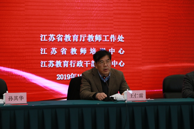 为深入贯彻落实习近平总书记关于“四有”好教师、做学生引路人等指示精神,落实党中央、省委省政府关于全面深化新时代教师队伍建设的有关部署,落实《省教育厅办公室关于启动“四有”好教师团队建设的通知》文件要求,12月2日至4日,省师干训中心在南京主办江苏省“四有”好教师团队建设专题培训班。我校党委书记王仁雷、省教育厅教师工作处处长马斌、省教科院基教所所长倪娟、省教育报刊社社长孙其华、省师干训中心副主任徐伯钧出席开班仪式。省师干训中心常务副主任季春梅主持开班仪式。