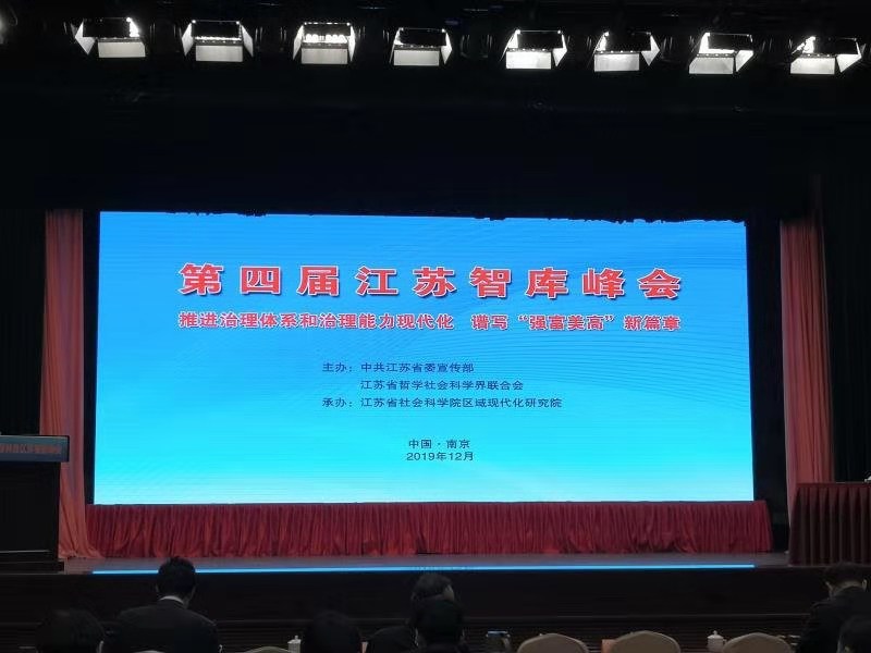 12月5日,由省委宣传部、省社科联主办,省社科院区域现代化研究院承办的第四届江苏智库峰会在南京举行。省内外著名智库专家、江苏省新型智库理事会成员、国家高端智库建设培育单位、省重点高端智库、培育智库、省决策咨询研究基地首席专家及骨干专家,各设区市社科联负责人,以及智库十佳案例代表和优秀成果获奖作者200余人与会,围绕“推进治理体系和治理能力现代化、谱写‘强富美高’新篇章”的主题展开研讨。