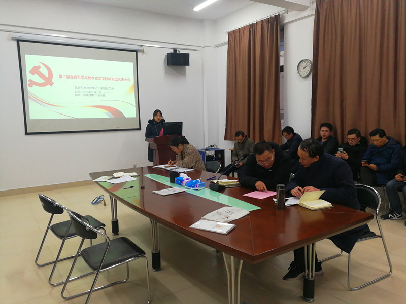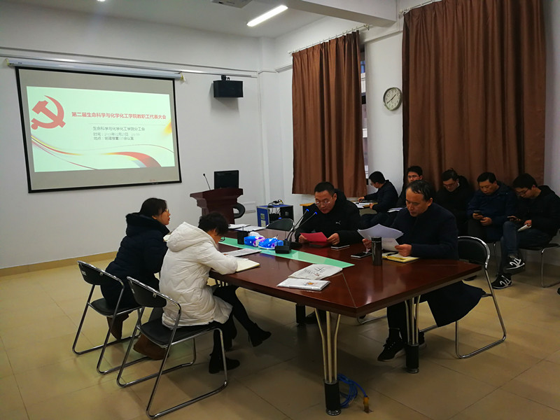 12月25日下午,生化学院召开第二届教职工代表大会。院长蒋功成作《在拼搏中成长——生命科学与化学化工学院2019年教代会工作报告》和《生化学院2019年财务工作报告》。分工会主席朱琨作《生命科学与化学化工学院分工会2019年度工作总结》。会议由副院长朱学伸主持。