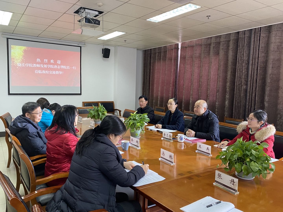 12月31日上午,晓庄学院教师发展学院院长唐志华、副院长周鹃等一行4人来我校,与继续教育学院进行交流研讨。继续教育学院院长徐群主持会议,副院长柏杨、各科室主要负责人参加会议。