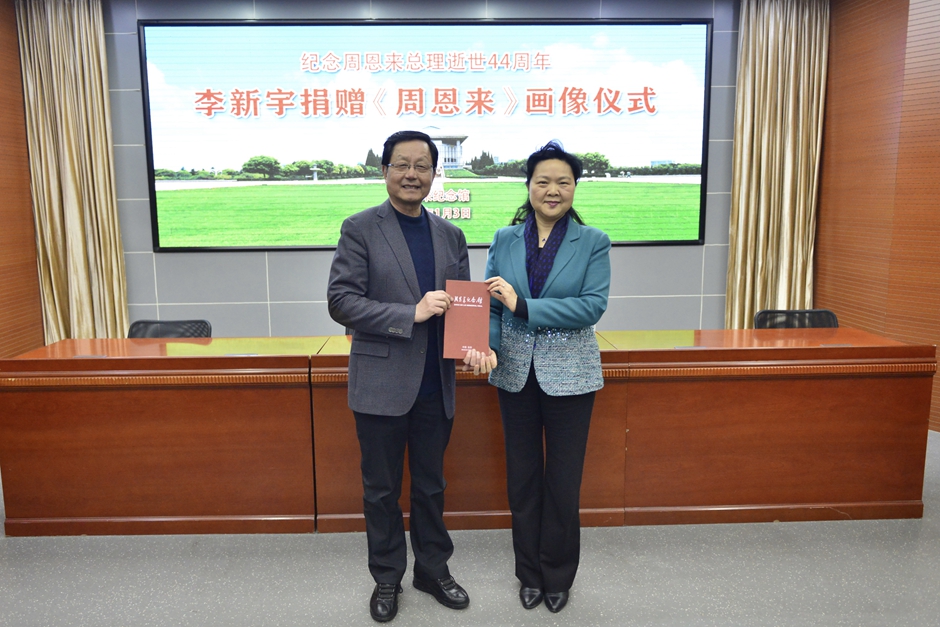 周恩来纪念地管理局局长、周恩来纪念馆馆长孙晓燕,周恩来纪念馆副馆长施春生等热情接待了李新宇一行,对我校的捐赠行为表示赞赏和感谢,授予李新宇捐赠证书,并表示一定会让画像在纪念馆内得到妥善保管。