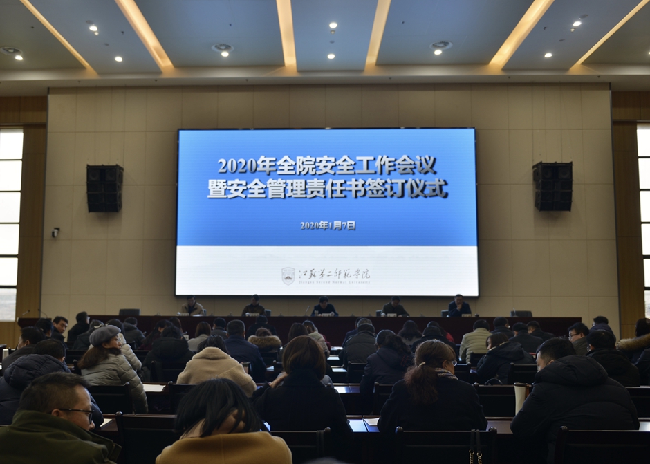 2020年1月7日,我院召开安全工作会议,全面贯彻落实党中央、国务院安全生产工作决策部署,全面落实教育部、省委、省政府、省教育厅关于学校安全的工作要求,对我院开展校园与校车安全专项整治行动、防范化解安全风险进行部署。党委书记王仁雷,院长王建,院领导刘继红、祝兴成、王晓天出席会议。各机关处室行政主要负责人、二级学院党政主要负责人共计60余人参加会议。会议由副院长祝兴成主持。