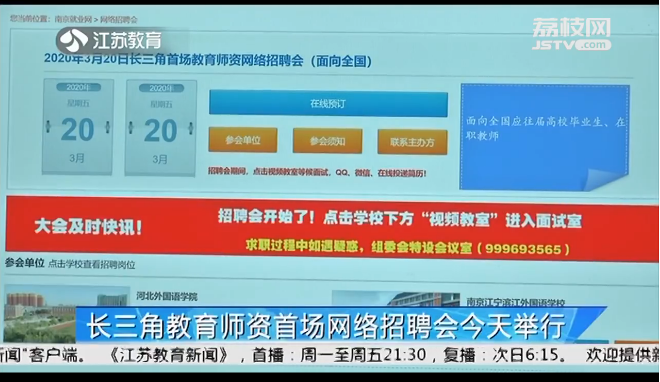 [江苏教育频道] 长三角教育师资首场网络招聘会3月20日举行
