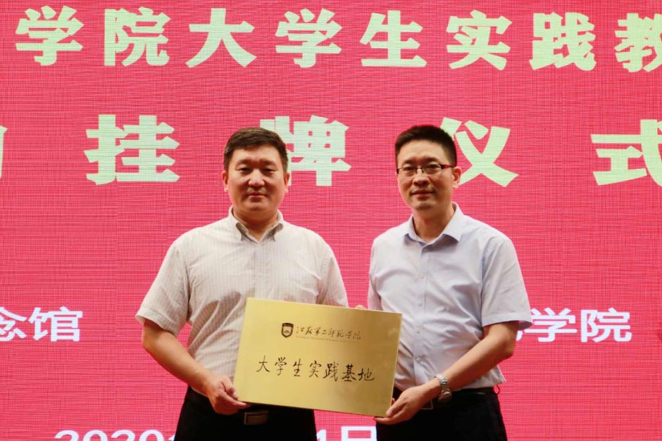 8月4日下午,我校与盐城新四军纪念馆举行共建大学生实践基地签约和挂牌仪式。校党委副书记潘文,马克思主义学院院长刘素梅、副院长张俊飞,盐城新四军纪念馆馆长仇金标参加此次签约和挂牌仪式。