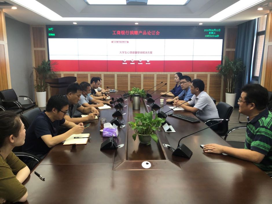 8月12日上午,工商银行委托第三方协议单位一行3人来我校洽谈心理援助智能终端机——“温暖小屋”捐赠项目。发展办主任陈国庆主持洽谈会。学工处、团委、保卫处、后勤处、信息化办公室、资产服务总公司等相关部门负责人参加会议。
