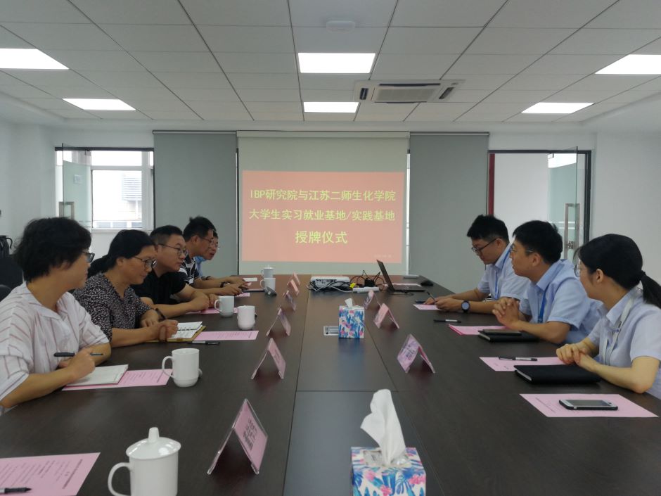 8月28日上午,生命科学与化学化工学院党总支书记陈建琴,副院长朱学伸、杜攀,党总支副书记陈燏以及学工办副主任董伟伟、药学博士秦城一行六人,赴南京先进生物材料与过程装备研究院(以下简称IBP)考察实习实践与就业基地并举行双方合作交流洽谈。IBP研究院副总经理季栋,人事经理严金丽,分析测试部副主任李亚军等参加交流。