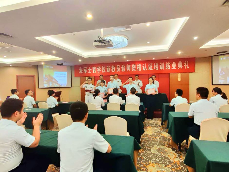 9月1日下午,海军士官学校新教员教师资格认证培训班在草场门校区开班。经过近一个月对《教育心理学》《教育学》《课程教学论》《教育科学研究方法》《教师职业道德》《教师基本教学技能训练》等课程的系统学习与研训,学员们经过单科考试与综合考核,全部通过了教师资格认证。