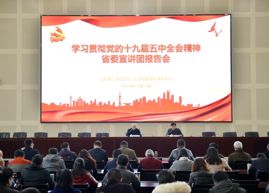 王仁雷在讲话中表示,省委宣讲团来院宣讲,对我院全体师生更好地用党的十九届五中全会精神统一思想、凝聚力量,推动我院高质量发展具有重要意义。王仁雷对全院师生提出三点要求。一是要学深学透,把学习宣传贯彻党的十九届五中全会精神作为首要政治任务,进一步把思想和行动统一到全会精神上来,把智慧和力量凝聚到落实全会提出的各项任务上来,确保始终在思想上、政治上、行动上同以习近平同志为核心的党中央保持高度一致。二是要弄懂弄通,要深刻学习领会全会提出的新理念、新任务、新举措,把学习贯彻全会精神同深入学习贯彻习近平总书记关于教育工作的重要论述紧密结合起来,进一步强化“四个意识”、坚定“四个自信”,做到“两个维护”。三是要落地落实,要着眼江苏在全国、在长江经济带发展中的重要地位,准确把握中央《建议》和习近平总书记关于《建议》稿说明的精神实质与丰富内涵,紧紧围绕习近平总书记视察江苏时的重要讲话精神,科学谋划我院“十四五”时期发展规划。