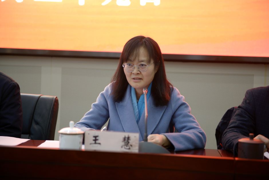 王慧代表溧水区委统战部宣读贺信,希望双方加强交流合作,深化友谊,携手共进,为江苏第二师范学院、溧水区发展作出更大的贡献。