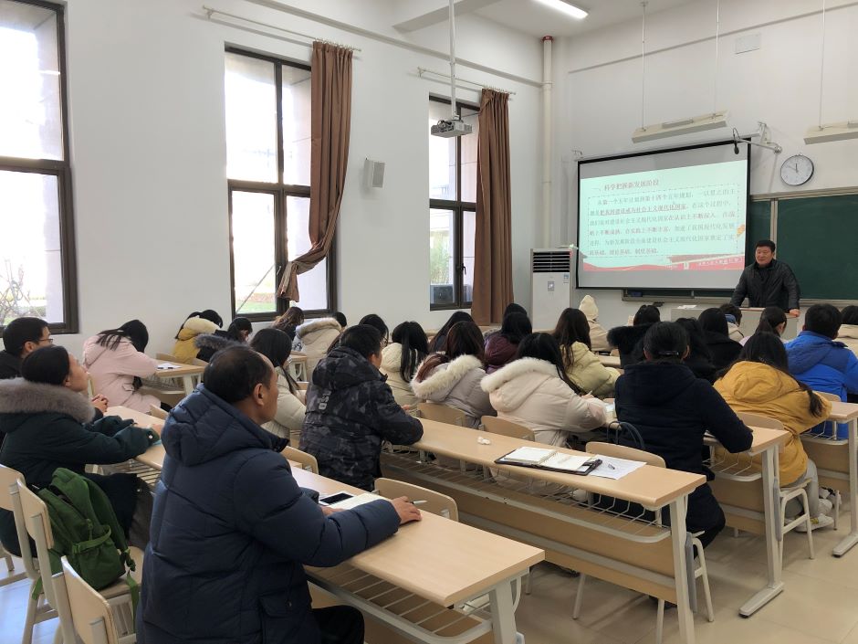 1月8日上午,校党委副书记潘文教授为联系学院——马克思主义学院和文学院的师生代表近50人讲授了一堂“形势与政策”课。