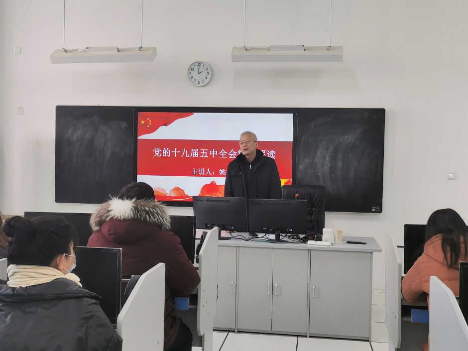 姚振标带领师生学习党的十九届五中全会精神,重点讲解了《中共中央关于制定国民经济和社会发展第十四个五年规划和二〇三五年远景目标的建议》,从科学把握新发展阶段、深入贯彻新发展理念、加快构建新发展格局、坚持党的全面领导四个方面,对党的十九届五中全会精神进行了解读。他指出,党的十九届五中全会是在全面建成小康社会胜利在望、全面建设社会主义现代化国家新征程即将开启的重要历史时刻召开的一次十分重要的会议。他强调,要坚决贯彻落实习近平总书记重要指示精神和党中央决策部署,为开启全面建设社会主义现代化新征程、向第二个百年奋斗目标进军作出新的更大贡献。