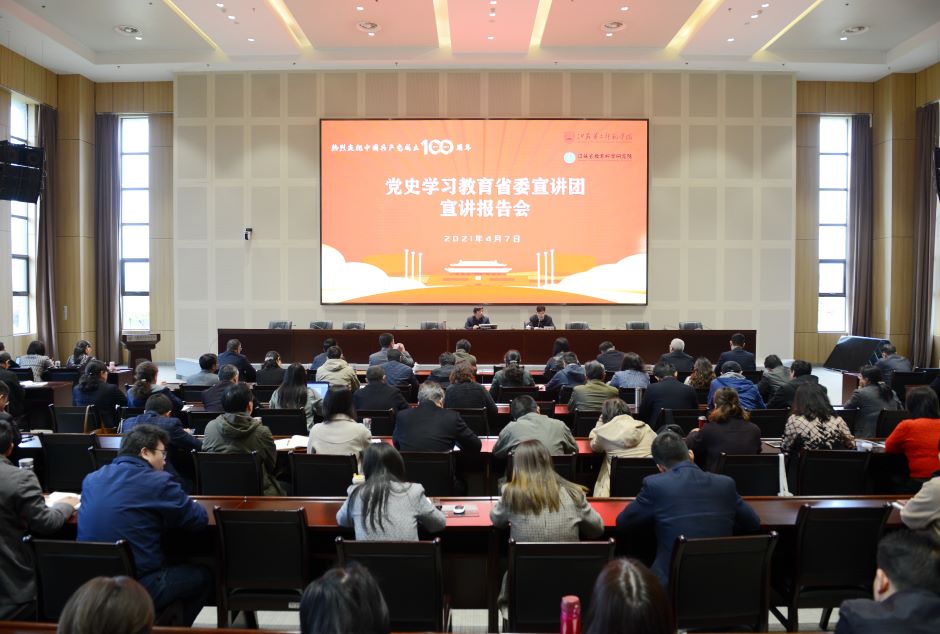4月7日下午,党史学习教育省委宣讲团成员、南通大学陈志杰教授来我院作宣讲报告。院党委书记王仁雷主持报告会。院领导,全体党委委员、纪委委员,中层干部,院党史学习教育领导小组及办公室成员,思政课教师,各二级学院党支部书记、学生代表参加报告会。