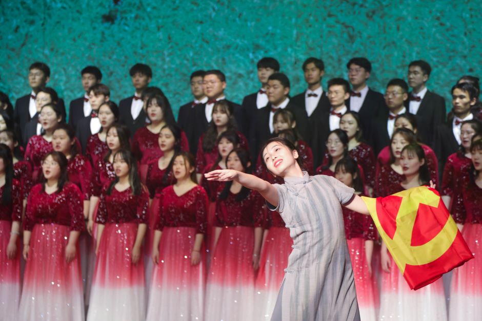 表彰结束后开展了“风雨百年建伟业”学党史主题艺术团课,来自各学院的12支队伍参赛。同学们以心歌唱、以乐传情,把青年学子的激情与热情展示得淋漓尽致。经过激烈角逐,教育科学学院、商学院荣获一等奖,美术学院、城市与资源环境学院、数学与信息技术学院、外国语学院荣获二等奖,生命科学与化学化工学院、物理与电子工程学院、马克思主义学院、文学院、传媒学院、体育学院荣获三等奖。学前教育学院、音乐学院荣获最佳演唱奖。