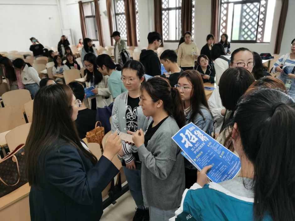5月12日下午,扬子江药业集团来我校生化学院开设专场招聘会。集团招聘经理李妍一行为同学们介绍了扬子江药业集团的相关情况,百余名大学生参加本次招聘会,招聘会由生化学院党总支副书记陈燏主持。