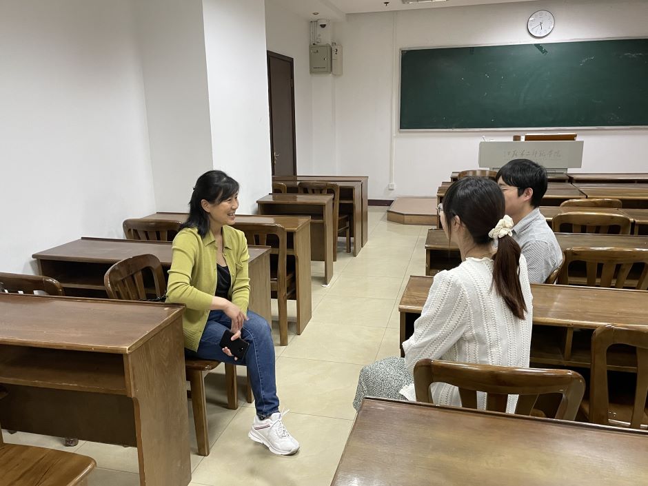 5月12日,王曦与17思政2班张奕、朱智成、庞亚民、王星等同学进行了交流。张奕同学简要介绍了班级同学就业及考研情况,朱智成同学表达了想在工作期间完成非全日研究生的学习目标,庞亚民同学表达了对于二战考研的想法,王星同学分享了参加事业单位考试的学习经验。王曦认真听取了同学们的就业历程和学习规划,对于已经成功考编考研的同学表示祝贺,同时对还在不懈努力的同学表示关心,并进行鼓励。王曦希望已经确定就业去向的同学不放松学习,要确立更高远的学习深造和提升自我的目标。她指出,在新课改背景下,新教师更要注重自身角色的转变,要做教育教学的研究者和反思者。在教育教学中,要以研究者的眼光审视和分析教学实践中的问题,探究问题积累经验,从而形成规律性的认识。她强调,终身学习是自身专业发展的不竭动力,同学们要不断开拓视野,更新知识结构,潜心教育教学,提高专业素养和教学水平。她还与同学们分享了自己的教育教学经验与体会。