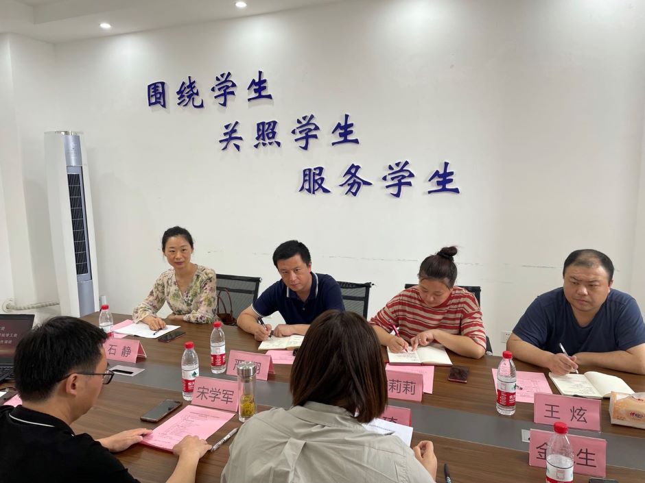 宋学军对南京城市职业学院一行表示热烈欢迎,从我校历史、专业特色、招生就业等方面作了介绍,并着重介绍了我校师范专业培养特色。大学生心理健康教育中心周韵从心理健康课程建设、学生活动开展、心理咨询服务及心理危机预防四个方面介绍了我校心理健康工作开展情况;学生管理科金永生从宿舍网格化、宿舍管理系统、学生自管会、宿舍文化建设等方面作了详细介绍;综合管理科刘琦着重介绍了我校辅导员队伍结构、制度建设及工作特色;学生资助管理科李桂雅对我校的资助育人服务体系进行了全面介绍。双方就学生工作中的一些具体做法和工作难点进行了深入交流。
