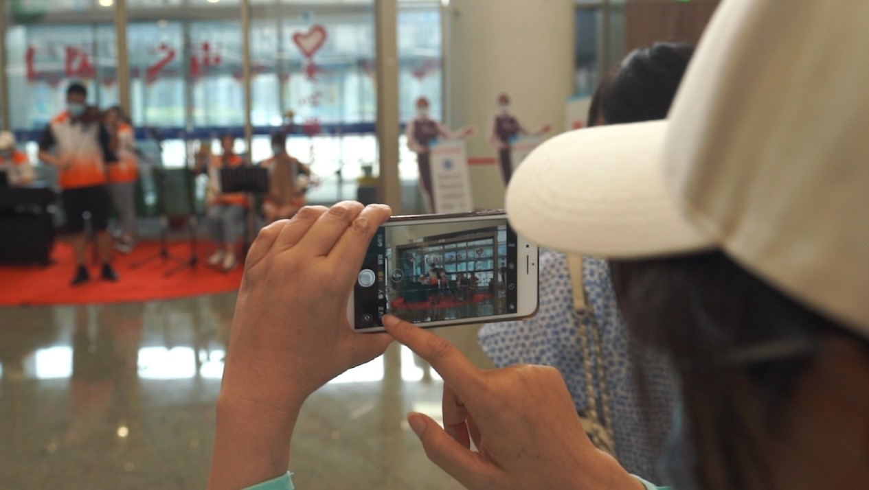 记者在活动现场看到,路过的人群有的拿出手机记录,有的迎着曲调唱了起来。来拿药的孙先生久久驻足,手上还打起了节拍,“听到音乐声感觉心情澎湃,要不是还要办事,我真想把音乐会听完。”住院患者王女士也入了迷,住院的日子实在很无聊,她每周三都会雷打不动来听歌,“现在医院就诊环境真的越来越好了,以前真不敢想还可以在医院听到专业的音乐会”,除了让心情愉悦外,李女士称每周享受音乐会对病情恢复起到了积极作用,增强了自己战胜疾病的信心。