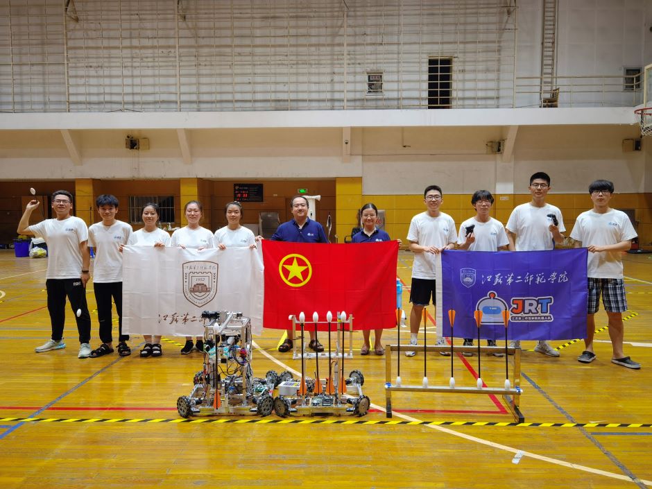 我校机器人团队在校团委书记刘姝和物电学院党总支书记、副院长葛传楠的领导下,由物电学院学生党员和共青团员组成,物电学院实验中心主任陈青为指导教师、分团委书记胡丹任领队。团队在训练和参赛过程中得到了校党委、教务处、体育学院、教师教学发展中心的大力支持。