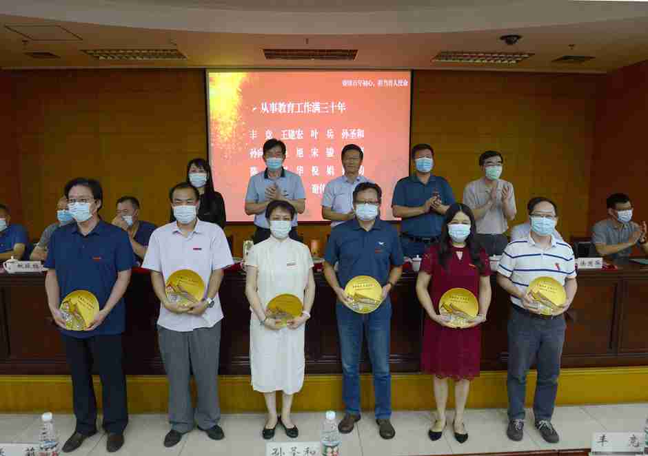 教龄满三十年代表、科研处处长章飞回顾了30年的工作经历。他从一名长期从事一线教学工作的老师视角出发,用简单、年轻和成就感三个关键词回忆了与学生、与同事在一起的点滴时光,分享了从教30年的心得体会。