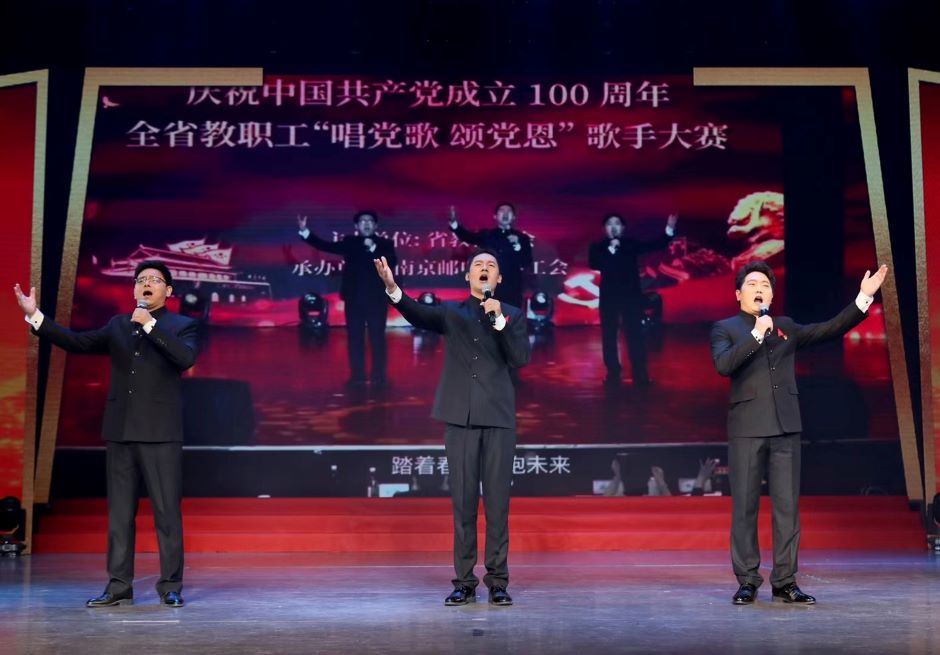 近日,江苏省职工庆祝中国共产党成立100周年“永远跟党走”系列主题宣传教育活动展演暨“唱党歌、颂党恩”歌手大赛在无锡隆重举行。我校T.N.T组合吴迪、韦利军、张想三位老师以作品《我们的新时代》荣获本次大赛铜奖。