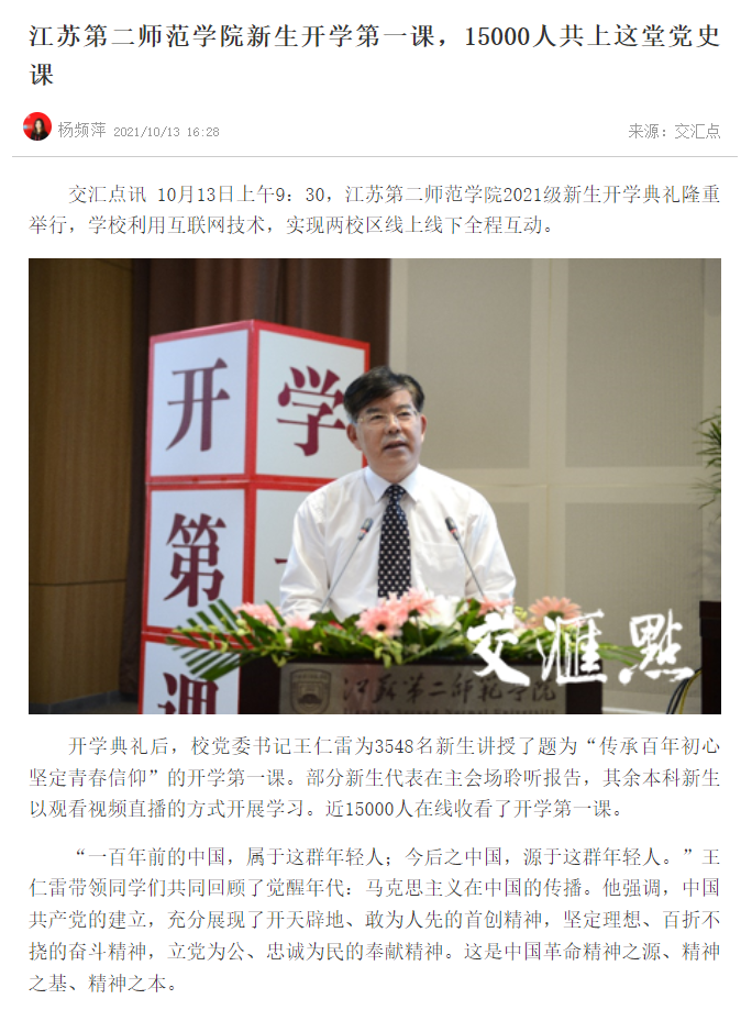 江苏第二师范学院新生开学第一课,15000人共上这堂党史课