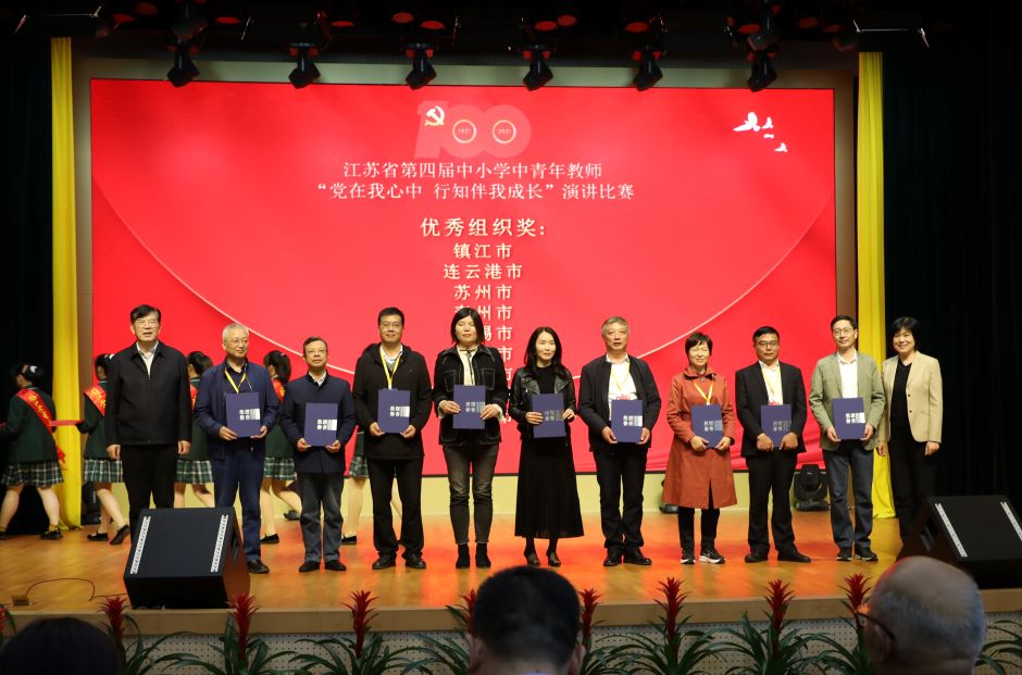 为深入学习贯彻习近平新时代中国特色社会主义思想,庆祝中国共产党成立100周年,纪念伟大的人民教育家陶行知先生诞辰130周年,努力造就党和人民满意的“四有”好老师,10月28日,由江苏省陶行知研究会、江苏省教育科技工会主办,镇江市陶行知研究会、镇江市教育工会承办的全省第四届中小学中青年教师“党在我心中 行知伴我成长”演讲比赛在镇江崇实女子中学隆重举行。经过各设区市层层选拔,来自全省中小学的37名优秀中青年教师代表同台竞技,尽展风采。