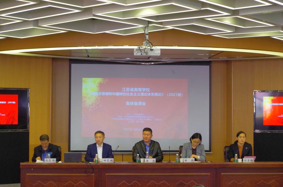 为深入学习贯彻习近平总书记在庆祝中国共产党成立100周年大会上的重要讲话精神,贯彻落实中宣部、教育部印发的《新时代学校思想政治理论课改革创新实施方案》要求,学习领会2021版《毛泽东思想和中国特色社会主义理论体系概论》新教材,提升思想政治理论课教师教学能力,10月29日至31日,江苏省高校《毛泽东思想和中国特色社会主义理论体系概论》(以下简称《概论》)2021版新教材集体备课会在我校顺利召开。我校党委副书记潘文,江苏省教育厅社政处副处长邹燕,江苏省高校思政课教指委“毛泽东思想和中国特色社会主义理论体系概论”分教指委主任田芝健,以及省内各兄弟高校任课教师100多位代表参加现场会议,166位教师通过腾讯会议参加线上集体备课,我校马克思主义学院院长刘素梅主持会议。