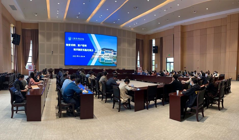 11月4日,我校召开物资采购、资产管理规章制度实施培训会,党委常委、总会计师姚振标出席会议并讲话,各二级学院、部门负责物资采购、资产管理的负责人和经办人参加会议,国资处(招标办)处长(主任)应正兴主持会议。