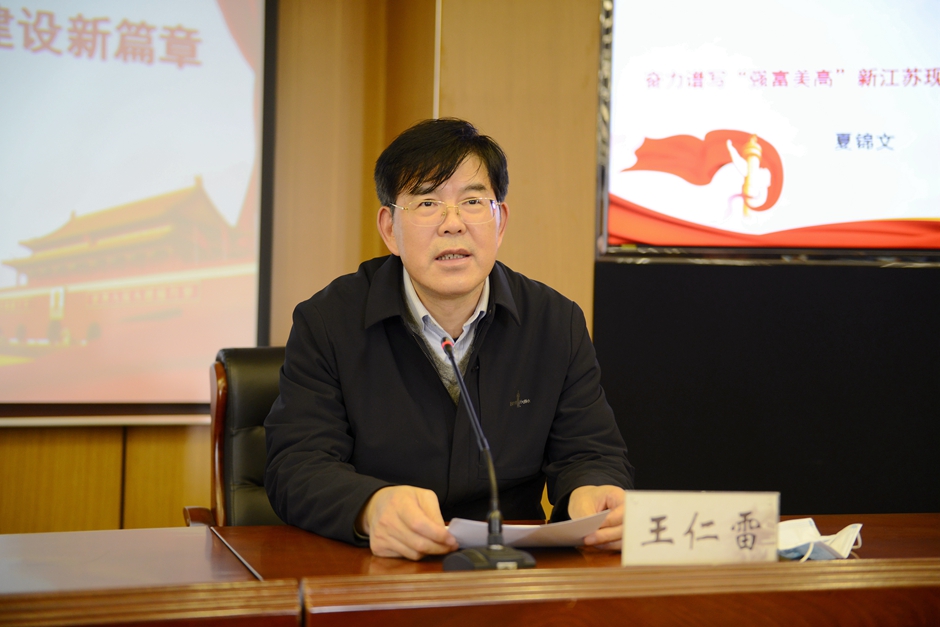 王仁雷作总结讲话。他表示,省委宣讲团来院宣讲,对我院全体师生更好地用省第十四次党代会精神统一思想、凝聚力量,推动我院高质量发展具有重要意义。他对全院师生提出三点要求。一是要统一思想,提高认识。要把认真学习贯彻省第十四次党代会精神作为当前和今后一个时期的重大政治任务。全院党员干部要深入学习领会省党代会精神,切实把思想和行动统一到省委部署要求上来,坚决扛起“两争一前列”三大光荣使命,加快实现“六个显著提升”,要以虔诚之心、敬畏之情,全面领会、准确把握省党代会的精神实质和核心要义。二是要系统学习,弄懂弄通。要把学习贯彻党代会精神同深入学习领会党的十九届六中全会精神结合起来,同学习贯彻习近平总书记对江苏工作重要讲话指示精神结合起来,同党史学习教育结合起来,同院党委的决策部署结合起来,同当前的各项工作结合起来,坚持联系、系统地学习领会省党代会精神,要做捍卫“两个确立”、践行“两个维护”的表率,在新时代新征程上展现新气象、新作为。三是要知行合一,学以致用。要透彻地学习领会省党代会报告的精神实质、丰富内涵和实践要求,持之以恒抓好学习深化、理解消化、运用转化,推动省党代会的决策部署和工作要求在学院落地生根、落实见效,切实把学习成果转化为引领学院事业高质量发展的强大动力和实际成效。