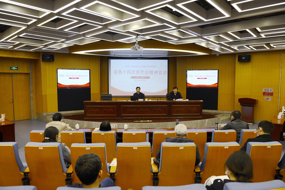 12月29日,学习贯彻省第十四次党代会精神省委宣讲团成员,省社科院党委书记、院长夏锦文来我院,为师生们宣讲省第十四次党代会精神。党委书记王仁雷主持会议,全体院领导,中层干部和学生代表参加会议。