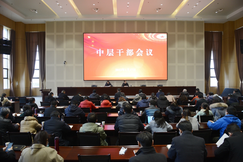 1月17日下午,我校在石湫校区敬业楼107报告厅召开全体中层干部会议,对寒假期间有关工作进行安排和部署。会议由党委书记王仁雷主持,全体校领导、中层干部参加会议。