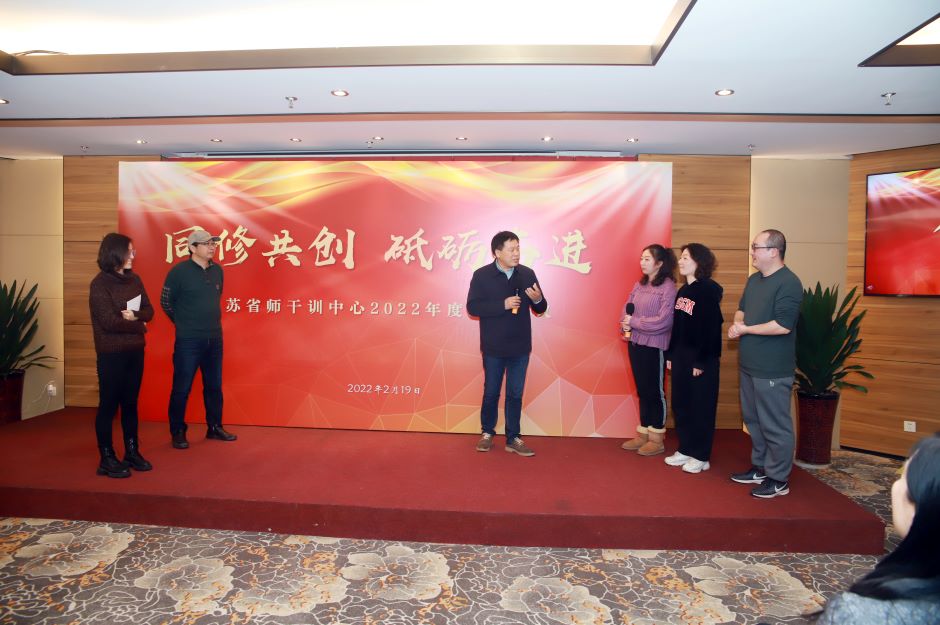 东风既解冻,万物始复苏。2月19日,省师干训中心2022年度工作会议在草场门校区百草园宾馆召开。会议以“同修共创,砥砺奋进”为主题,全面总结回顾了2021年度省师干训中心工作成果,对2022年度中心重点工作任务进行部署,开展了新学期中心全体工作人员团队建设活动。