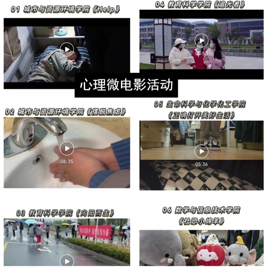 大学生心理健康教育中心对各学院开展的活动和班会进行了评选。最终美术学院、城市与资源环境学院的主题活动获得“最佳活动”,文学院、外国语学院、生命科学与化学化工学院、商学院、马克思主义学院、教育科学学院的主题活动获得了“优秀活动”,20个班级的心理班会分获“十佳心理班会”和“优秀心理班会”。