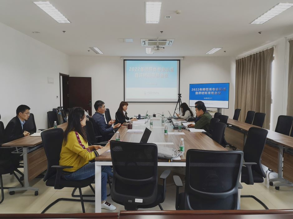 4月21日上午,我校在石湫校区敬业楼323会议室召开2022年师范类专业认证自评材料审核会议,会议线上线下同步进行。副校长徐国华出席并主持会议。认证专家组,地理科学、英语专业认证工作团队,教学质量监测与评估处相关人员参加会议。