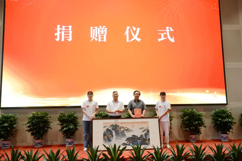 纪委书记陈金如代表学校接收退休老教授书画作品捐赠