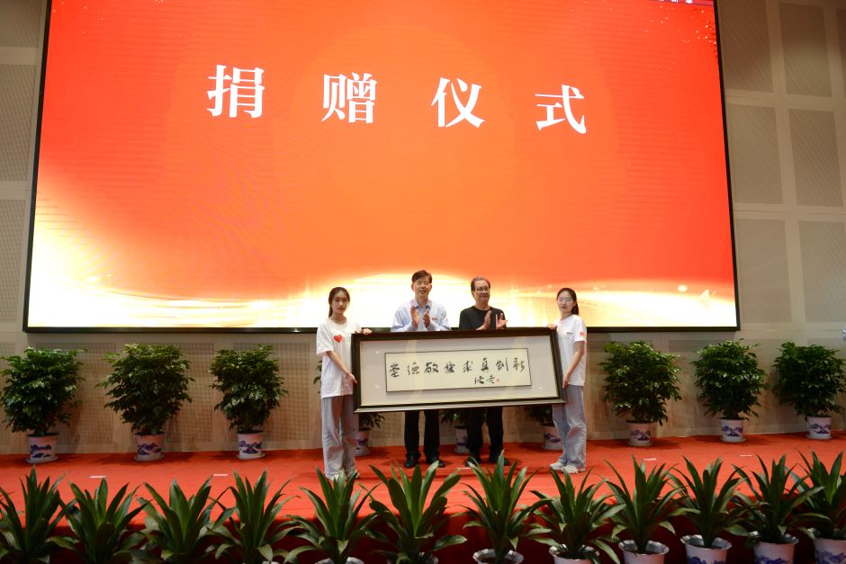 党委书记王仁雷代表学校接收书法作品捐赠
