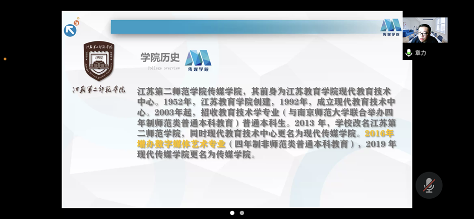 章力介绍了传媒学院发展历程以及在专业建设、人才培养等方面的情况。董子瑜简单介绍了江苏省广电总台的一些基本情况。吴强从传统电视业务、动漫创投、少儿培训、对外交流合作四个方面详细介绍了江苏电视台优漫卡通频道的情况。