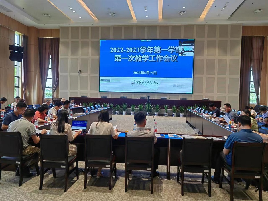 8月29日下午,我校召开新学期第一次教学工作会议。本次会议采用跨校区线上线下相结合的方式,分别在两校区同步进行。副校长徐国华主持会议,各学院院长和分管教学副院长、公共课开课单位负责人、教务处、教学质量监测与评估处相关人员参加会议。